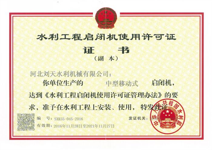 啟閉機使用許可證-中型移動式啟閉機