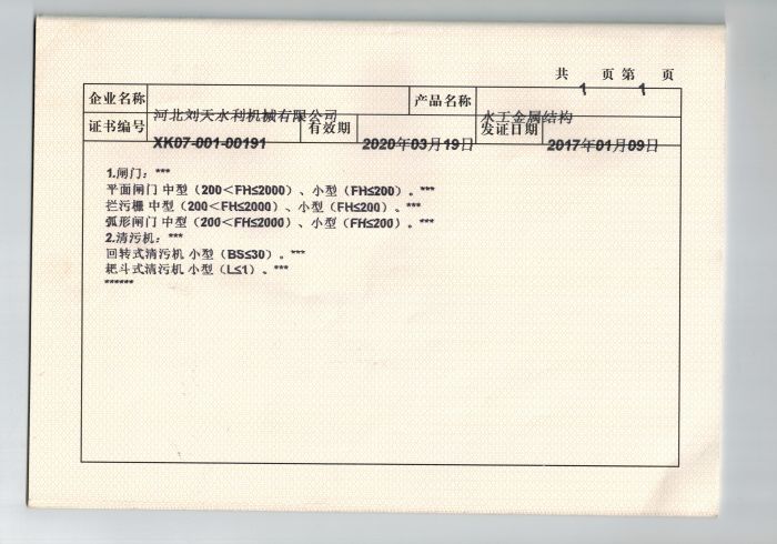 水工金屬結構證書